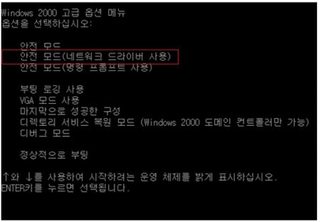 A. 윈도 2000 의 경우 – 안전모드(네트워크 드라이버 사용) 선택