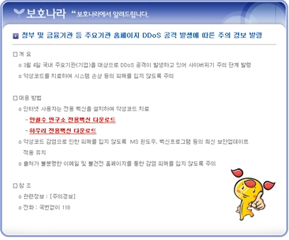 - 이번 DDoS 전용백신의 원활한 공급을 위해 두 곳에서 조치 가이드를 드리고 있습니다