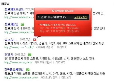 중고차 관련 검색을 하던 도중, 악성코드를 배포중인 사이트가 '사이트가드'에 포착됐습니다.