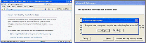 [그림 2-6] Antivirus XP 2008의 다양한 허위 경고 메시지