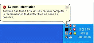 [그림 2-6] Antivirus XP 2008의 다양한 허위 경고 메시지