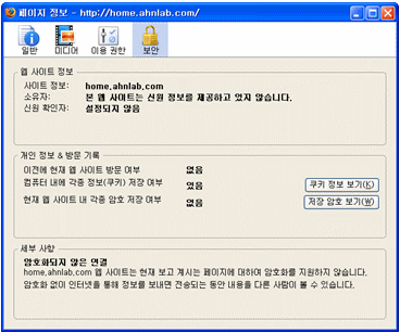 파이어폭스 3은 Site Identification Button을 제공하여 [그림 5]와 같이 피싱 공격으로부터 사용자를 보호한다. 이 버튼을 사용자가 클릭하면 [그림 6]과 같이 사이트가 제공하는 신원정보를 확인할 수 있다.