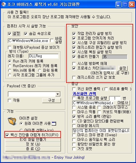 더욱 심각한 것은 이런 조커를 자동으로 제작해 주는 프로그램이다. 이는 기본적으로 컴퓨터 보안 제품을 정상 동작하지 못하게 하는 기능이 설정되어 있으며, 윈도우의 중요 보안 설정을 임의로 변경하는 기능 또한 포함되어 있다. 이 경우 사용자 컴퓨터의 보안 제품이 무력화 되어 더 큰 피해를 낳을 수 있다.