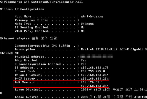 따라서 자신이 사용하는 ISP업체에서 제공하는 DNS 주소를 알아두고 이를 주기적으로 확인하는 습관이 필요하다.