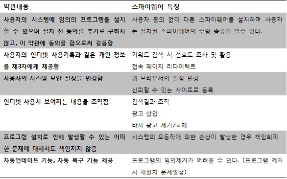 위와 같이 사용자에게 불리한 약관이 있는 줄 모르고 프로그램을 설치하게 되면 예기치 못한 불편에 직면할 수 있다.