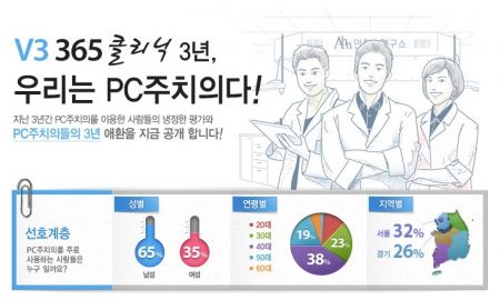 글로벌 통합보안 기업인 안철수연구소(대표 김홍선, www.ahnlab.com)는 ‘V3 365 클리닉 PC주치의(http://v3clinic.ahnlab.com)’ 사용자 대상 설문조사 결과 평균 94%의 서비스 만족도를 기록했다고 밝혔다. ‘V3 365 클리닉 PC주치의’는 통합 백신 ‘V3 365 클리닉’과 ‘PC주치의’ 서비스가 결합된 제품이다. ‘PC주치의’ 서비스는 보안전문가가 원격으로 사용자 PC에 접속해 보안 문제는 물론 PC 사용 시 발생하는 각종 문제를 해결해주는 무제한 PC 문제 해결 서비스이다.