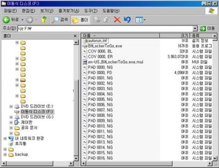 BitLockerToGo.exe를 실행하고 암호를 입력하면 암호화된 드라이브를 조회할 수 있는 윈도우가 나타난다. 비트락커 투 고 리더의 치명적 단점은 읽기만 가능하고 쓰기가 불가능 하다는 것이다. Window 7이 출시될 때 개선이 될지 어떨지 모르겠다.