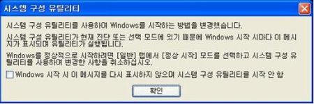 ⑤ 재부팅 시 경고 창이 나타나게 되는데, 매번 부팅 시마다 나타나는 것을 없애고자 할 때는, 네모 박스 선택 부분을 체크하면 이 후엔 표기되지 않게 됩니다