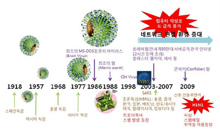 [그림] 시기별 인플루엔자와 컴퓨터 바이러스의 출현