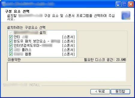 위에서 제공되는 번들을 살펴보면, AS 프로그램과 보안 패치 프로그램, IE(인터넷 익스플로러, 이하 IE) 검색어 서비스 2종, 그리고 웹툰 감상 프로그램으로 이루어져 있다. 이러한 번들은 비록 P2P의 기능과 관련성이 거의 없지만, 제품명만 갖고서는 그 기능을 정확히 인식할 수 없기 때문에 다수의 사용자들은 별 생각없이 ‘동의함’ 버튼을 누르게 된다.