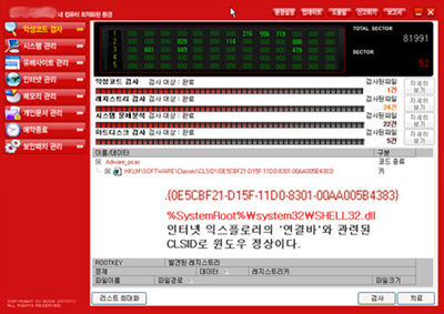 [그림 1]의 사례에서 볼 수 있듯이 어느 시스템에나 있을 법한 레지스트리 정보를 진단하고 ‘보안 경고창’을 보여주어 사용자의 결제를 유도한다. 역시 사기다.