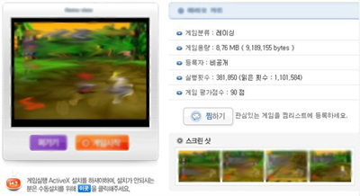 이 밖의 유사 방식으로는 게임 런쳐를 통한 번들 설치가 있다. 아래의 [그림 5]에 나오는 화면은 국내의 유명 무료 게임 사이트에서 사용자에게 제공하는 ‘게임 정보 페이지’이다.