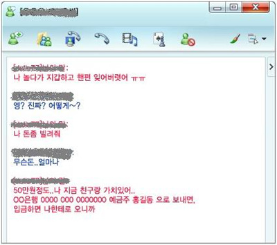 바로 인터넷 메신저 피싱의 피해자가 필자 뒷자리에서 발생한 것이었다. 물론 이 경우는 돈을 송금하는 피해를 입지 않았다. 하지만 운이 좀 좋은 케이스였다고 볼 수 있다.