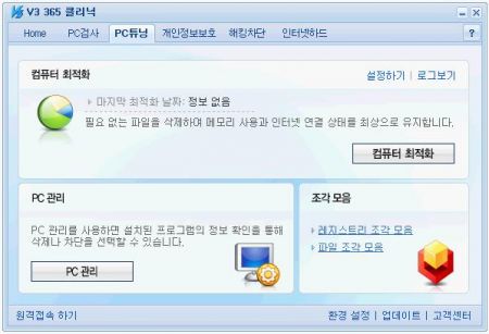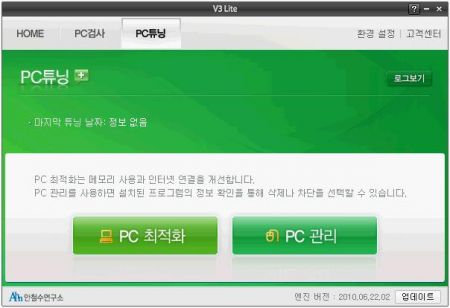 [그림 4 V3 Lite ‘PC튜닝’ 메뉴]