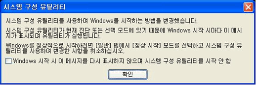 ② [확인] 버튼을 클릭하면 ‘시스템 구성 유틸리티’란 창이 나타납니다. 시스템 구성 유틸리티 창은 다음과 같은 항목으로 구성되어 있습니다.