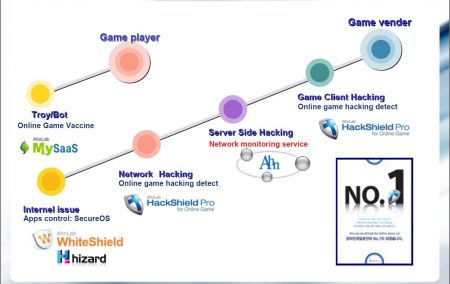 한편, 안철수연구소는 국내 게임 업계와 함께 해외진출 동반사례를 만들어 가며 온라인 게임뿐만 아니라 온라인 게임보안 솔루션에도 중국, 일본, 동남아, 미국, 브라질, 러시아 등 해외 10여 개국에 수출하고 있습니다.