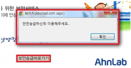 [그림 3] '보안승급바로가기' 버튼 클릭 유도 메시지