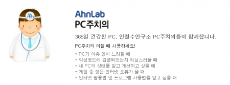 무엇보다 PC주치의는 바이러스, 스파이 웨어, 해킹 등 각종 보안 위협으로부터 PC를 보호하기 위한 백신(V3 365 클리닉)까지 제공, 명실공히 '종합 PC 케어 서비스'로 불리고 있다.