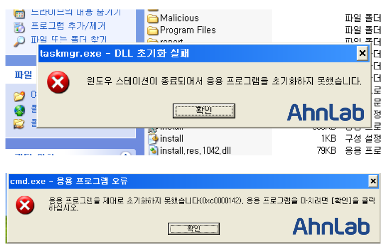 또한 기본적인 시스템 관리 도구를 사용할 수 없도록 시스템을 수정하여 정상적인 PC 사용을 어렵게 만든다.