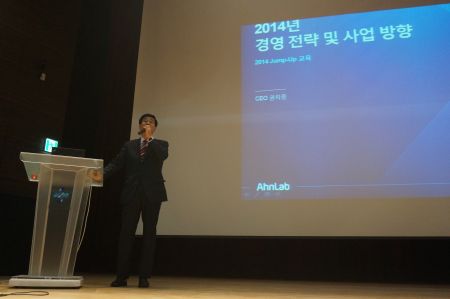 점프 업(Jump-up) 스쿨 첫 강연은 작년 12월 새로 취임된 권치중 CEO의 ‘2014 안랩의 사업방향에 대한 연설로 시작됐다.