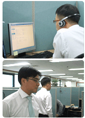 V3 365 클리닉 PC주치의 서비스는 아침 9시부터 밤 11시까지 2 교대로 진행되고 있습니다. 잠시 숨 돌릴 짬도 없이 밤늦게까지 빠듯하게 진행되는 상담 일정 중에서도 빠지지 않는 것이 상담원 대상의 교육이라고 고영욱 팀장은 강조합니다. 특히 고객과의 신뢰를 바탕으로 한 서비스인 만큼 서비스 마인드 교육이 가장 우선시 된다고 합니다.