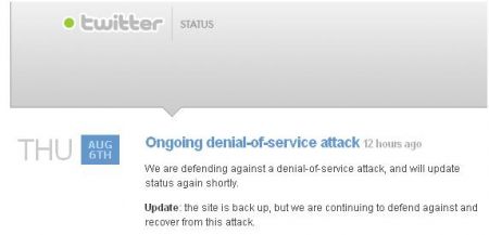 2009년 8월 트위터 서비스가 오전(현지시간) 해커들의 공격을 받아 먹통이 됐다. 6일(미국 동부시간 기준) 이날 오전 11시 30분까지 최소 2시간 이상 트위터 서비스에 접속되지 않았는데, 트위터측은 DDoS(distributed denial-of-service; 분산 서비스 공격) 공격이 원인이었다고 밝혔다.