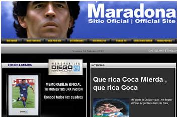 그림) 마라도나 개인 홈페지가 공격당한 화면 <출처. 골닷컴 스포츠>