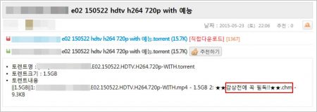 출처가 불분명하지 않아 악성코드에 감염되어 있을 확률이 높은 토렌트 파일에 “도움말 파일(.chm)”이 포함되어 있다면 앞으로 더욱 주의해야 한다.