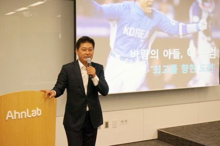 안랩(대표 권치중, www.ahnlab.com )은 28일 ‘한국 야구의 전설’ 이종범 야구해설가를 초청해 임직원 역량 강화 교육 프로그램 ‘VIEW(보충자료 참조)’ 특강을 진행했다.