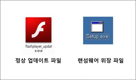 - 어도비 플래시 업데이트 파일로 위장, 정상 파일과 아이콘 모양 및 디지털서명 제작사 달라 실행 전 확인 필요