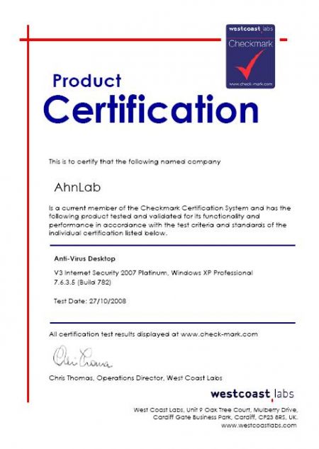 이로써 V3는 올해 실시한 체크마크 인증 테스트를 모두 통과했습니다.