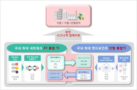 KT(회장 황창규, www.kt.com)는 안랩(대표 권치중, www.ahnlab.com)과 공동으로 국내 최초로 네트워크와 엔드포인트 위협정보를 통합해 신·변종 해킹에 선제적 대응이 가능한 ‘통합TI(Threat Intelligence, 위협정보) 1.0’ 개발을 완료했다고 2일 밝혔다.