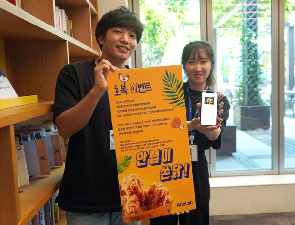 2003년부터 이어진 안랩의 ‘복날 이벤트’는 임직원이 복날 더위를 활기차게 이겨낼 수 있도록 기획된 행사다. 올해는 코로나19 확산 예방에 동참하기 위해 사옥에서 직원들이 모여 치킨이나 보양식을 즐기던 기존 이벤트 방식에서 스마트폰으로 치킨 기프티콘을 증정하는 ‘언택트’ 방식으로 전환한 것이 특징이다.
