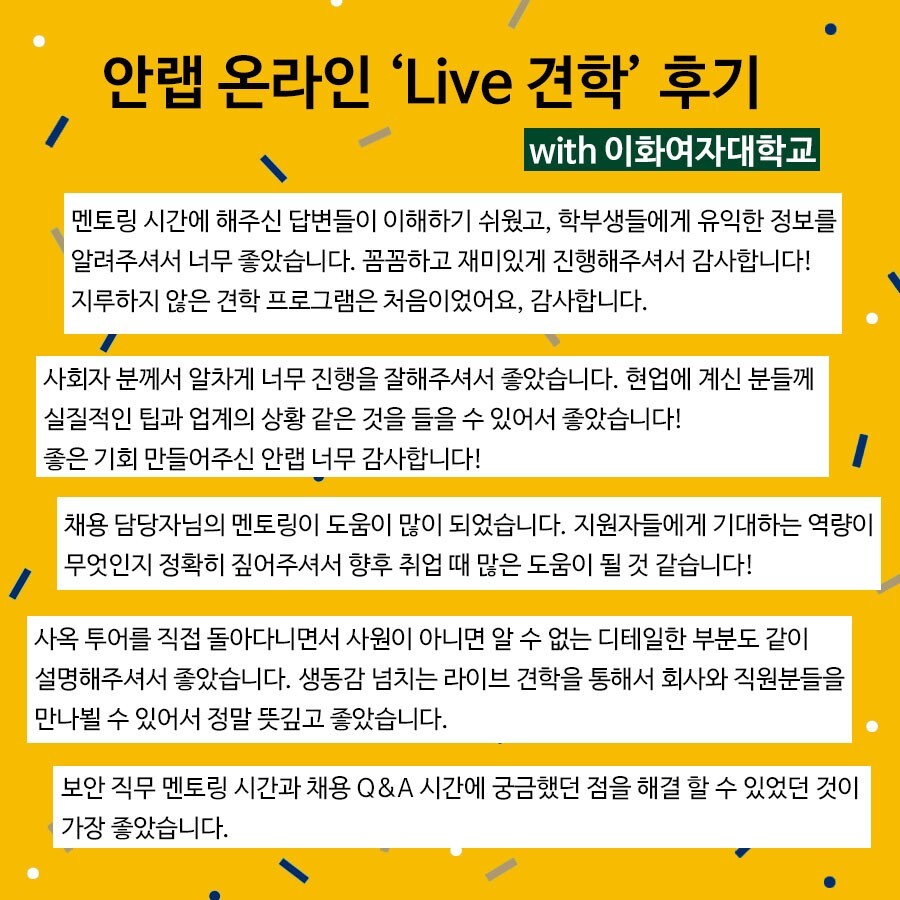 - 이화여자대학교 출신 현직자의 응원 메시지 전달