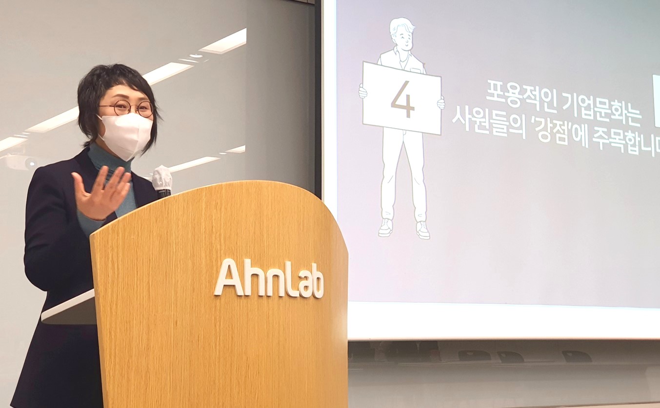 안랩(대표 강석균, www.ahnlab.com)이 3월 3일 (목) '기업의 지속가능성을 위해 필요한 다양성'을 주제로 임직원 대상 인권 교육을 실시했다.