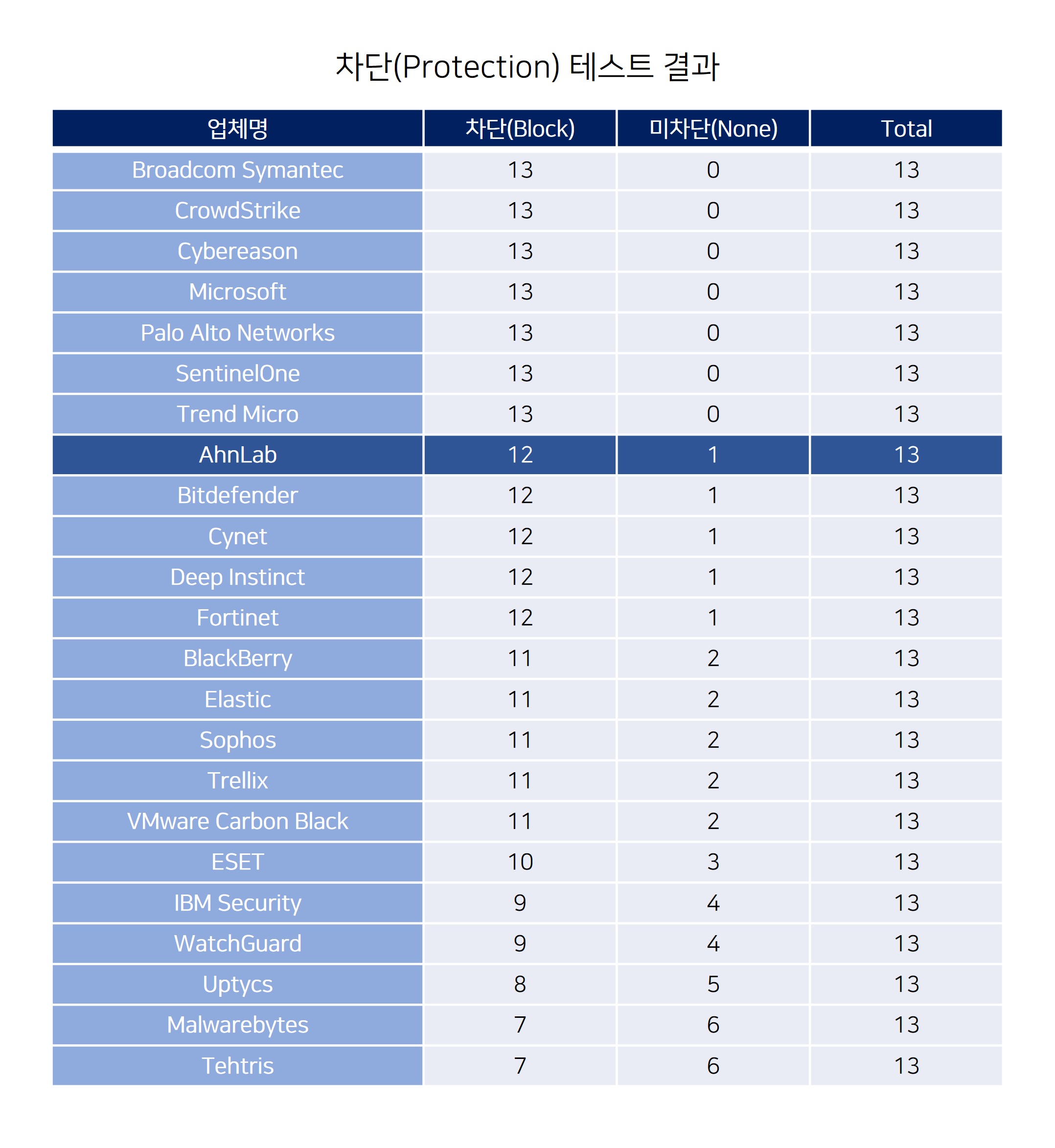 안랩, 글로벌 보안제품 대상 ‘마이터어택 평가’에서 상위권 위협 차단율 기록