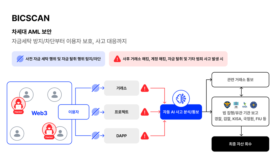 양사가 출시할 차세대 가상자산 AML 보안 서비스는 양사의 기술을 결합해 기존 AML 보안 서비스가 제공했던 사후 조치에 더해, 사전적 조치까지 지원하는 것이 특징이다. 가상자산 해킹 피해 예방부터 피해 발생 후 리포팅, 신고, 자산 회수, 자금세탁 분석 등까지 가상자산 보안의 전 과정을 폭 넓게 지원한다.