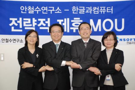 안철수연구소와 한글과컴퓨터는 제품 및 기술 개발, 온라인 마케팅 등 전방위적 사업 협력관계 구축을 위한 상호 협력 양해각서(MOU)를 체결했습니다.