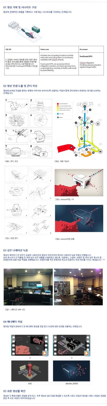 AhnLab Inside 안랩 보안 전략 한눈에 담은 영상 어떻게 만들었나 보안세상 2020. 4. 1. 04:39 2012.03.31 안녕하세요. 안랩인입니다. 안랩(안철수연구소) 웹사이트에는 홍보영상을 비롯해 다양한 동영상을 볼 수 있는 AhnLab TV 페이지가 있습니다. 이 중 안랩의 종합적인 보안 솔루션과 서비스를 한눈에 표현한 시큐리티 맵 동영상은 UX/TW팀의 디자이너가 한 땀 한 땀 공들여 만든 작품입니다. =>동영상 바로 가기 이 동영상이 어떤 과정을 거쳐 탄생했는지 소개하겠습니다. <Ahn>