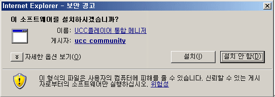 Win-Adware/UcccPlayer는 동영상 낚시글을 통해 특정 웹사이트로 유인 후 큰 화면의 동영상을 감상하기 위해서 UCC플레이어 통합 매니저 설치를 유도하는 전형적인 스파이웨어의 배포방법을 통해 사용자의 PC에 설치가 되었습니다. 동영상 실행을 위해 통합 매니저를 설치한 사용자의 PC에는 동영상 실행과 관계없는 허위 백신프로그램, 큐앰프, 윈사이드바, 캐시플러스 등의 프로그램이 사용자 동의를 받지 않은 채 함께 설치됩니다. (UCCC Player는 지난 4월 동영상 1회 클릭당 1원이라는 새로운 수익방식으로 스파이웨어를 통한 새로운 수익구조를 제시하여 많은 스파이웨어 배포자를 양산한 것으로 보입니다.)