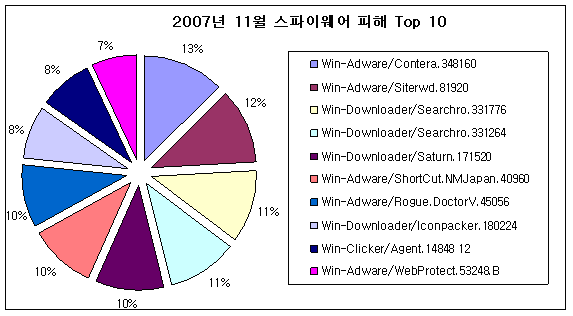 [그림 1] 2007년 11월 스파이웨어 피해 Top 10