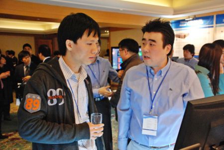 이어서 인터넷 뱅킹 등 일상생활에서 흔히 겪을 수 있는 웹 보안의 이모저모와 사이트케어(SiteCare) 및 트러스라인(TrusLine)의 소개를 사업기획팀 김창희 과장이 맡았습니다. 최근 화두인 스마트폰 보안 위협과 그 대응 방안은 모바일개발팀 최은혁 팀장이 발표했습니다. 특히 이날 행사에는 IT관리자 및 일반인 뿐만 아니라, 보안에 관심이 많은 청소년들도 참석해 발표에 귀를 기울이는 모습을 보였습니다.