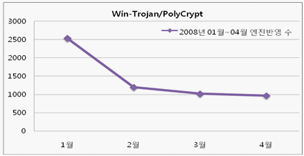 [그림 4] Win-Trojan/PolyCrypt에 대한 2008년 1월 ~ 4월 엔진반영 수