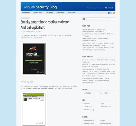 글로벌 통합보안 기업인 안철수연구소(대표 김홍선, www.ahnlab.com)는 최근 글로벌 영문 블로그인 ‘안랩시큐리티블로그(AhnLab Security Blog, http://globalblog.ahnlab.com) ' 를 개설해 소셜 미디어를 통한 글로벌 소통을 확대한다고 밝혔습니다.