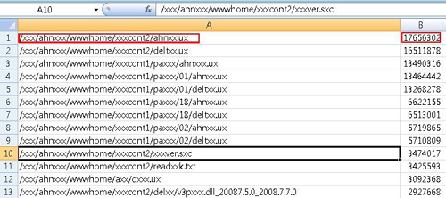 1일의 web 로그를 각 URL 별(필드4/cs-uri-stem)로 카운트 해본 결과로 xxxcont2/ahnxx.ux라는 파일을 1700만번 가져간 것으로 나타난다. 가장 인기가 좋은 컨텐츠로 볼 수 있다.