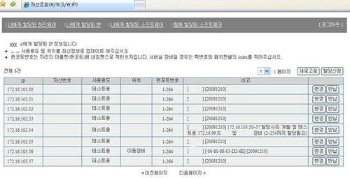 [그림5. 관리자를 통해 제공받은 내부IP 사용자 정보]