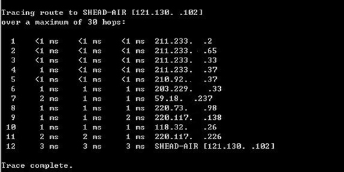 [그림2. Tracert 명령을 통하여 해당 PC의 네트워크상의 접속 경로를 확인]