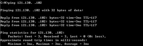 (켜져 있고 ping이 차단되어 있지 않은 경우 위와 같은 화면이 나타난다. Ping이 차단되거나 꺼져있는 경우 ‘Request timed out.’이 표기된다.)