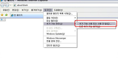 [그림 1 IE7의 추가 기능 관리 메뉴]